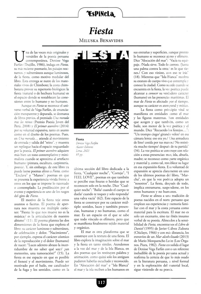Reseña de Fiesta, de Denisse Vega Farfán, por Miluska Benavides