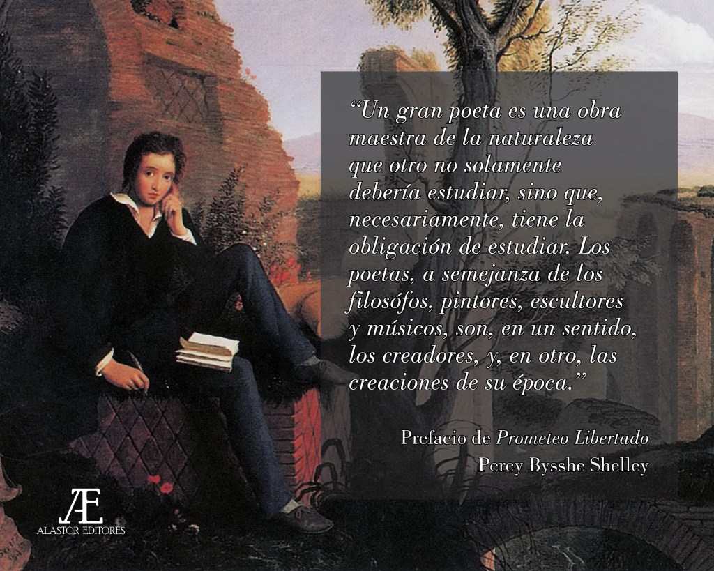 Percy Bysshe Shelley nació en el seno de una rica familia aristocrática. A los diez años aprendió latín y ciencias naturales y, después de dos años de estudios, entró a estudiar en Eton, el colegio destinado a los hijos de la aristocracia y de burgueses adinerados. En octubre de 1810 ingresó al University College de Oxford, de donde fue expulsado en marzo de 1811 por la publicación del panfleto La necesidad del ateísmo. Sus ideas radicales en política y liberales en lo moral, lo llevaron a un clima de confrontación con el entorno conservador de la Inglaterra de su época, por lo que decidió abandonar para siempre su patria y dirigirse a Suiza e Italia, donde vivió y alternó con otros exiliados ingleses como Lord Byron y Mary Shelley. Desarrolló una extensa obra poética, dramática y ensayística, mucha de la cual quedó inédita a su repentina y prematura muerte. Entre sus principales obras se encuentran: Queen Mab: A Philosophical Poem (1813), Alastor, or The Spirit of Solitude (1815), Ode to the West Wind (1819), The Cenci, A Tragedy, in Five Acts (1819), A Defence of Poetry (1821), Epipsychidion (1821), Adonais (1821), entre otras. Murió ahogado en Italia en 1822.