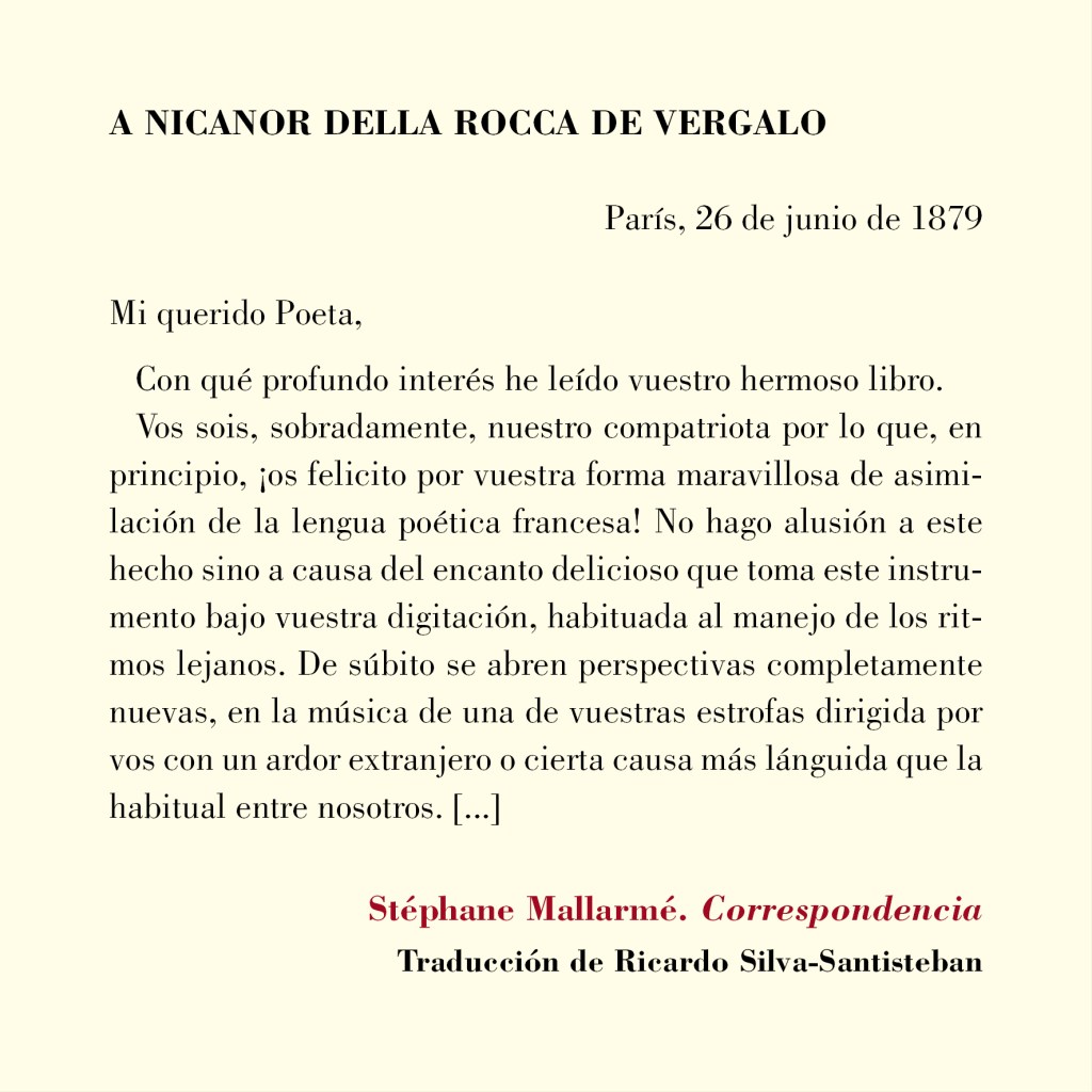 Luego de la aparición de los volúmenes Poesías (2013), Anécdotas o poemas / Igitur / Una jugada de dados nunca abolirá el azar (2013) y Divagaciones, seguido de Prosa diversa (2020), la colección La Fuente Escondida continúa la publicación de las obras de Stéphane Mallarmé (1842-1898) con esta selección de su Correspondencia (2022).