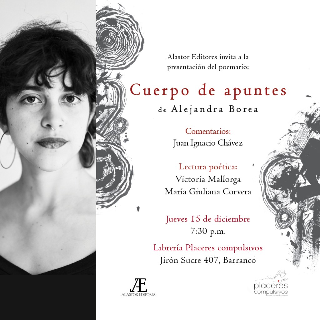 Cuerpo de apuntes, primer libro de poemas de Alejandra Borea (Lima, 1993), es el cuarto título de nuestra colección de poesía en edición digital ‘Fuera de los confines’.