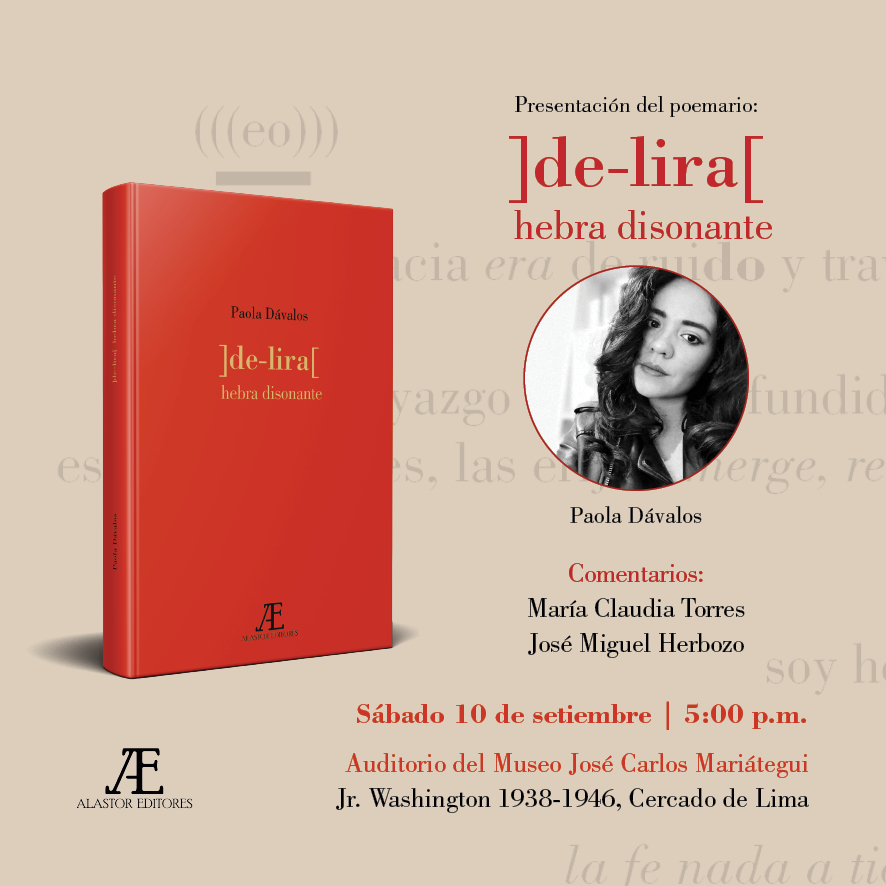 Paola Dávalos (Lima, 1991) es poeta y gestora cultural. Fue coorganizadora del colectivo “La Huaca es poesía” 2020-2021. Miembro y fundadora de los grupos artísticos: Verbo Húmedo (poesía erótica en escena) 2019-2020, Gugú Dadá (poesía y música) 2017. Ha publicado poemas en revistas y antologías: Revista de literatura Lucerna N°14 (2022), Volteando el siglo. 25 poetas peruanos (Editorial Casa de las Américas, 2020). Al Filo del Sol (1era. Antología poética en braille del Perú) (Golem Editores, 2019). Ha participado en distintos recitales, homenajes y eventos de poesía nacionales e internacionales.