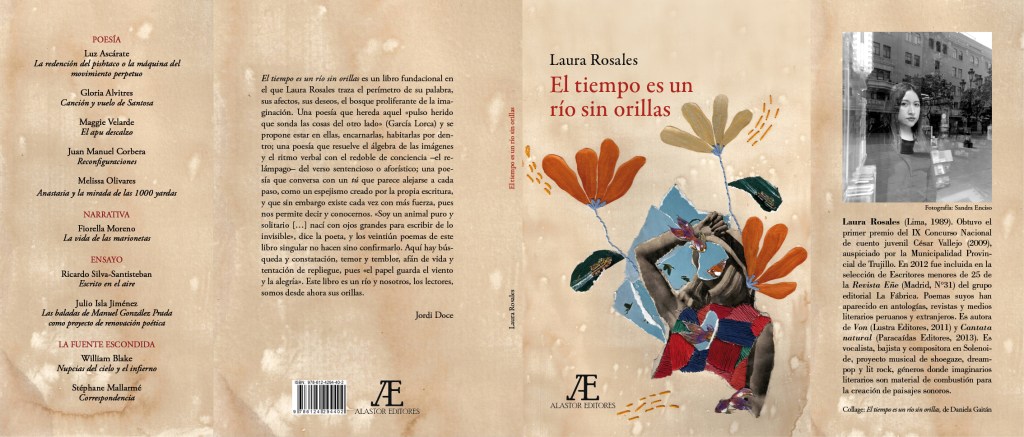 El tiempo es un río sin orillas es el tercer libro de poemas de Laura Rosales. Tomando el nombre de una pintura de Chagall, comparte con la obra del artista ruso su preferencia por un lenguaje poético lleno de color, matices e imágenes que, en su aparente simpleza, condensan sutileza y profundidad de pensamiento para expresar un mundo interior muy personal. El collage de la cubierta es de la artista colombiana Daniela Gaitán y las palabras de la contratapa del poeta y traductor español Jordi Doce.