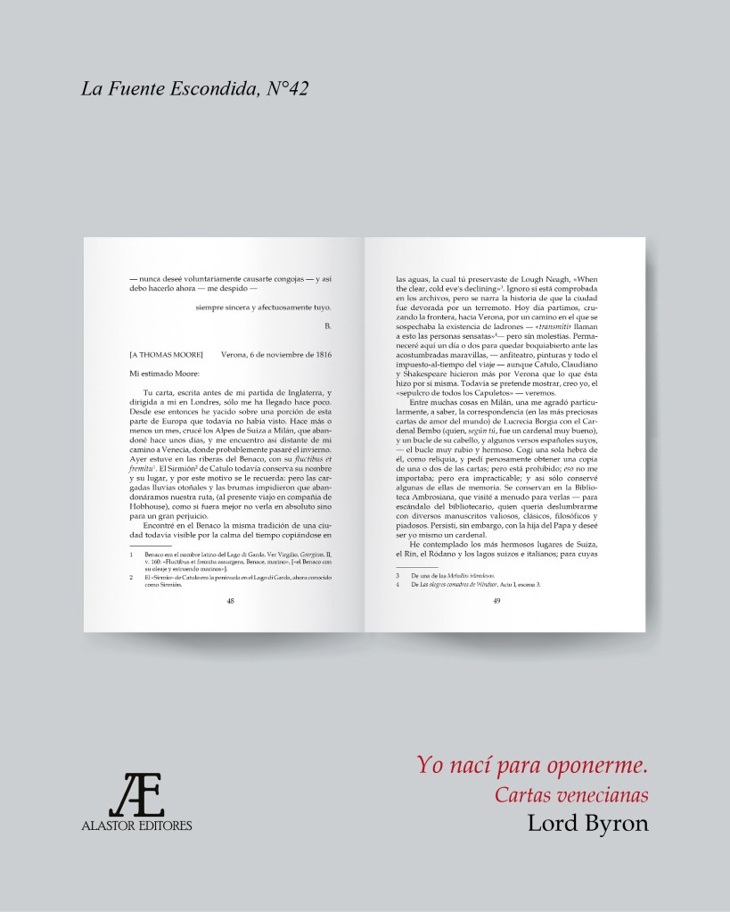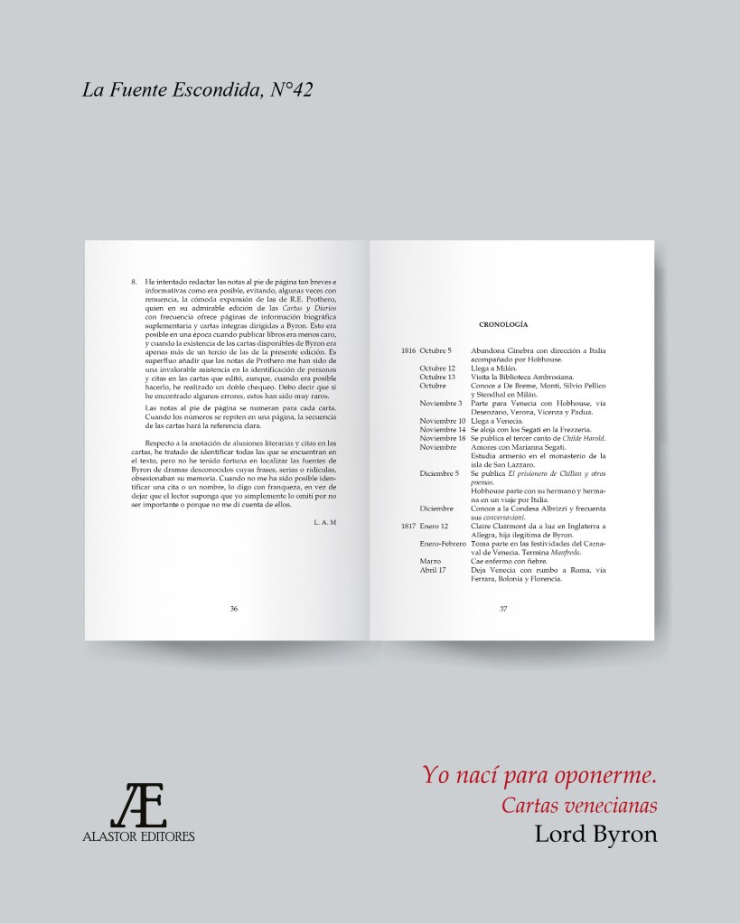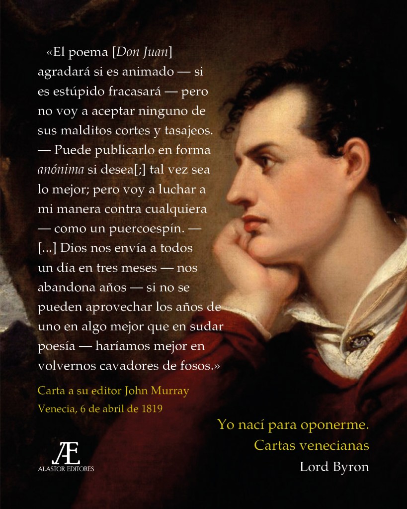 Yo nací para oponerme. Cartas venecianas, es una selección de la correspondencia del poeta inglés Lord Byron (1877-1824), que publicamos para conmemorar los 200 años de su muerte. El prólogo, cronología y notas son de Leslie A. Marchand y la selección y traducción de Ricardo Silva-Santisteban. Este libro es el título 42 de la colección La Fuente Escondida.