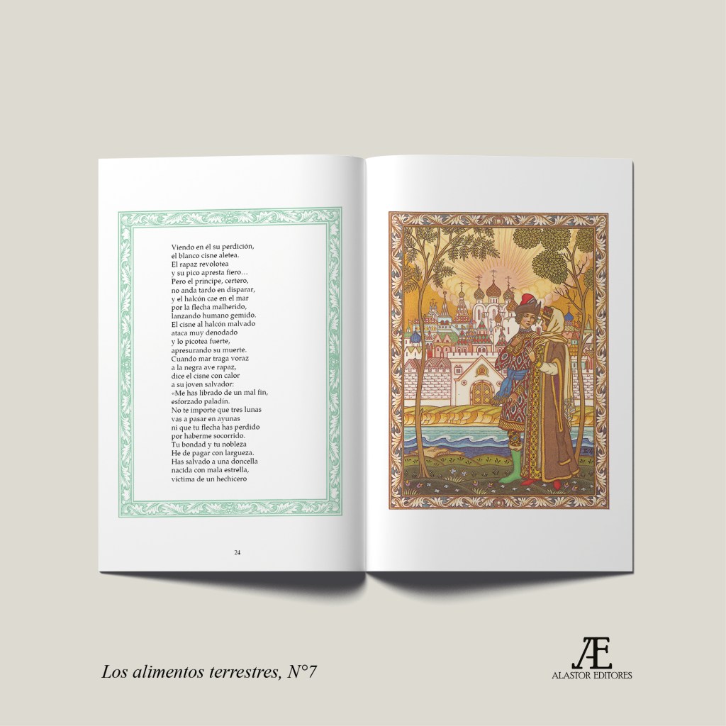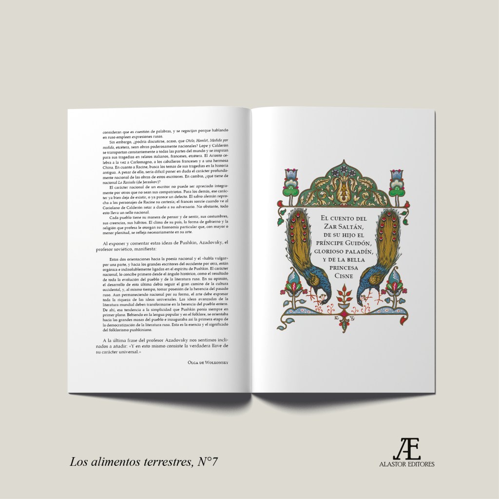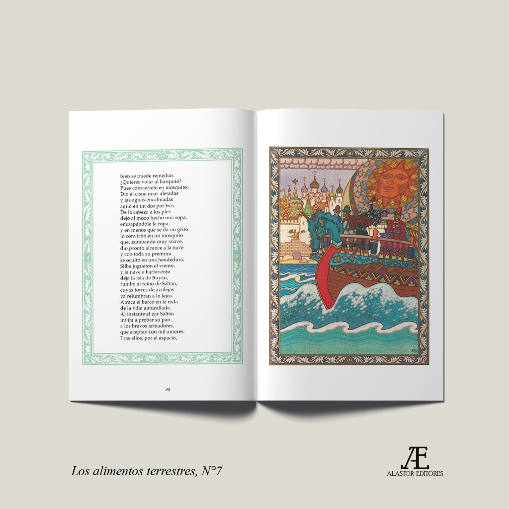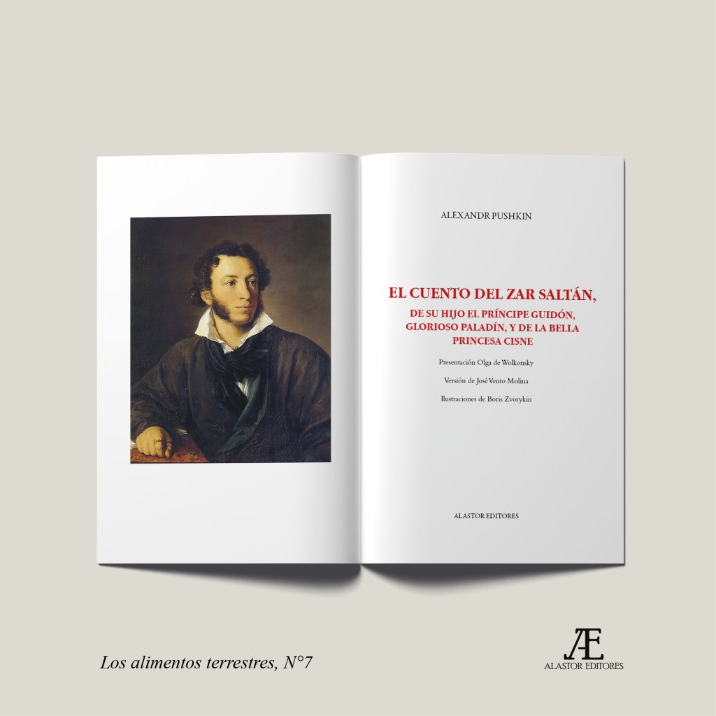 Conmemoramos los 225 años del nacimiento del más grande poeta ruso, Alexandr Pushkin (1799-1837), con esta edición ilustrada de El cuento del zar Saltán, uno de sus relatos en verso más célebres. La traducción es de José Vento Molina, la presentación de Olga de Wolkonsky y las ilustraciones de Boris Zvorykin. Este libro es el título N°7 de la colección Los alimentos terrestres.