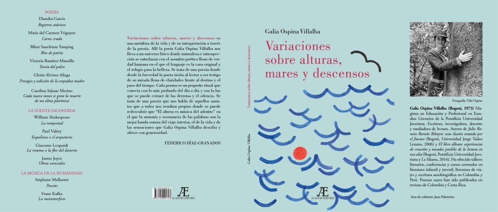 Variaciones sobre alturas, mares y descensos (2024), de la poeta colombiana Galia Ospina Villalba (Bogotá, 1973), es un libro de poesía solar que ilumina aquellos aspectos de nuestro espíritu ensombrecidos por el anhelo y la melancolía. Estas Variaciones nos invitan a volver a mirar nuestro ser para descubrir que nuestras búsquedas deben empezar por conocernos y sentirnos parte de un todo al que logramos volver en nuestros momentos de éxtasis. Este es el tercer título de nuestra colección Sílabas de ensanche de poesía internacional.
