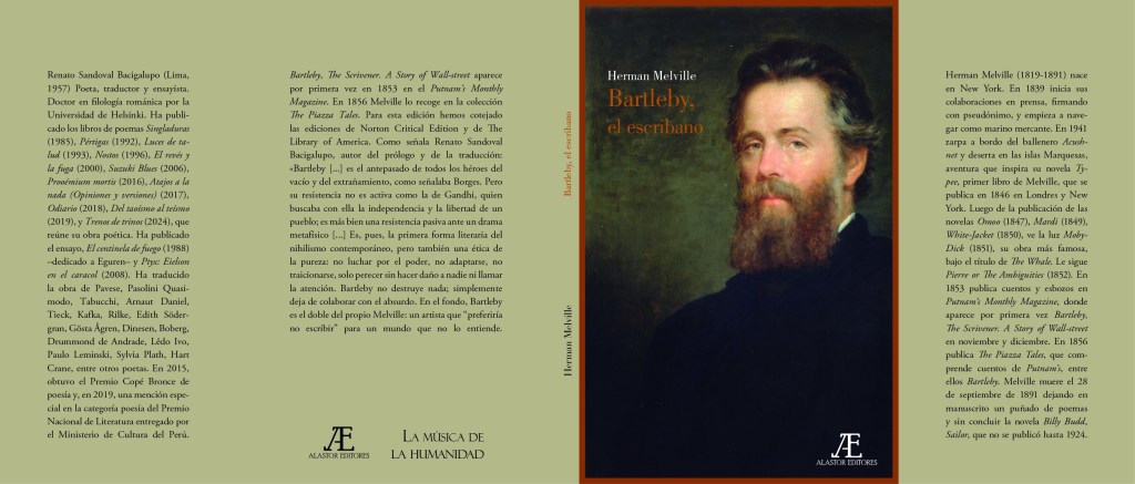 Esta nueva traducción de Bartleby, el escribano, que publicamos en edición bilingüe inglés-castellano, demuestra la vitalidad y actualidad de la famosa nouvelle de Herman Melville. Como señala Renato Sandoval Bacigalupo, autor de la traducción, la cronología y la presentación del libro, «Bartleby no destruye nada; simplemente deja de colaborar con el absurdo. «En el fondo, Bartleby es el doble del propio Melville: un artista que “preferiría no escribir” para un mundo que no lo entiende».